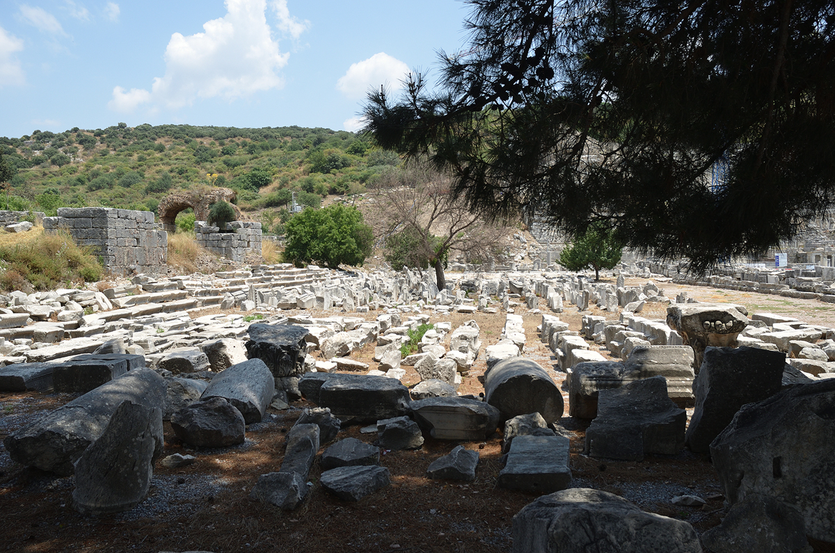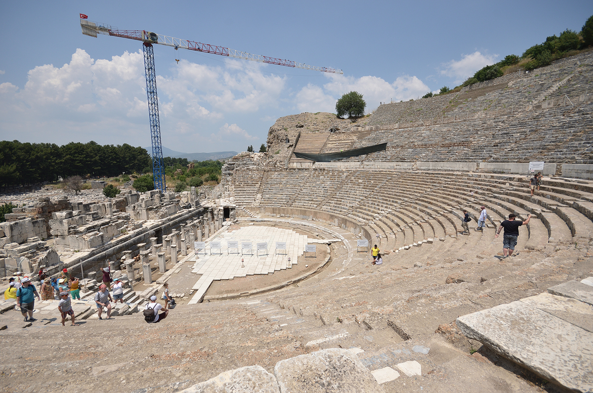 아카디우스 도로의 끝자락에서 바로 만나게 되는 원형 극장. 복원 공사가 진행되고 있다.