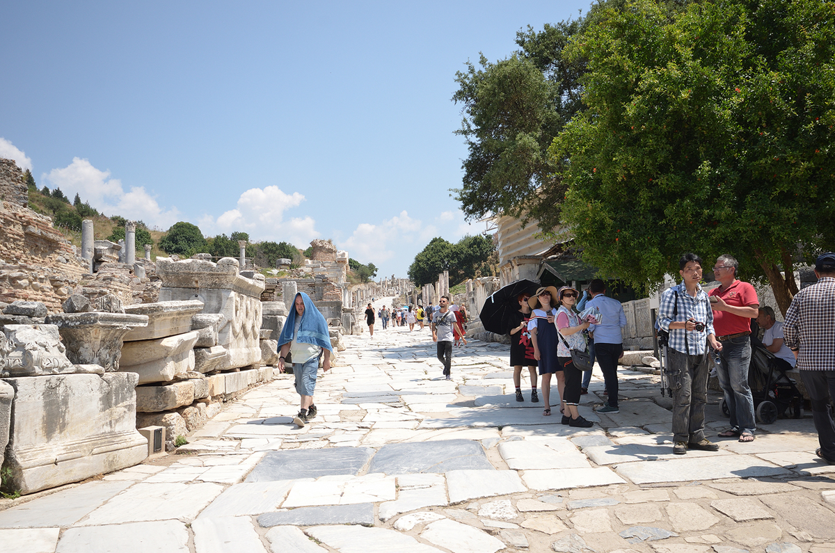 셀축 시내가 한산해서 에페스에 사람이 별로 없을 줄 알았는데 입구에 도착해서 들어가보니 사람들이 꽤 된다. 나처럼 셀축에 머물며 에페스를 방문하기보다는 관광버스를 이용해서 들리는 듯하다. 들어가며 마주친 한국 여행객분들...