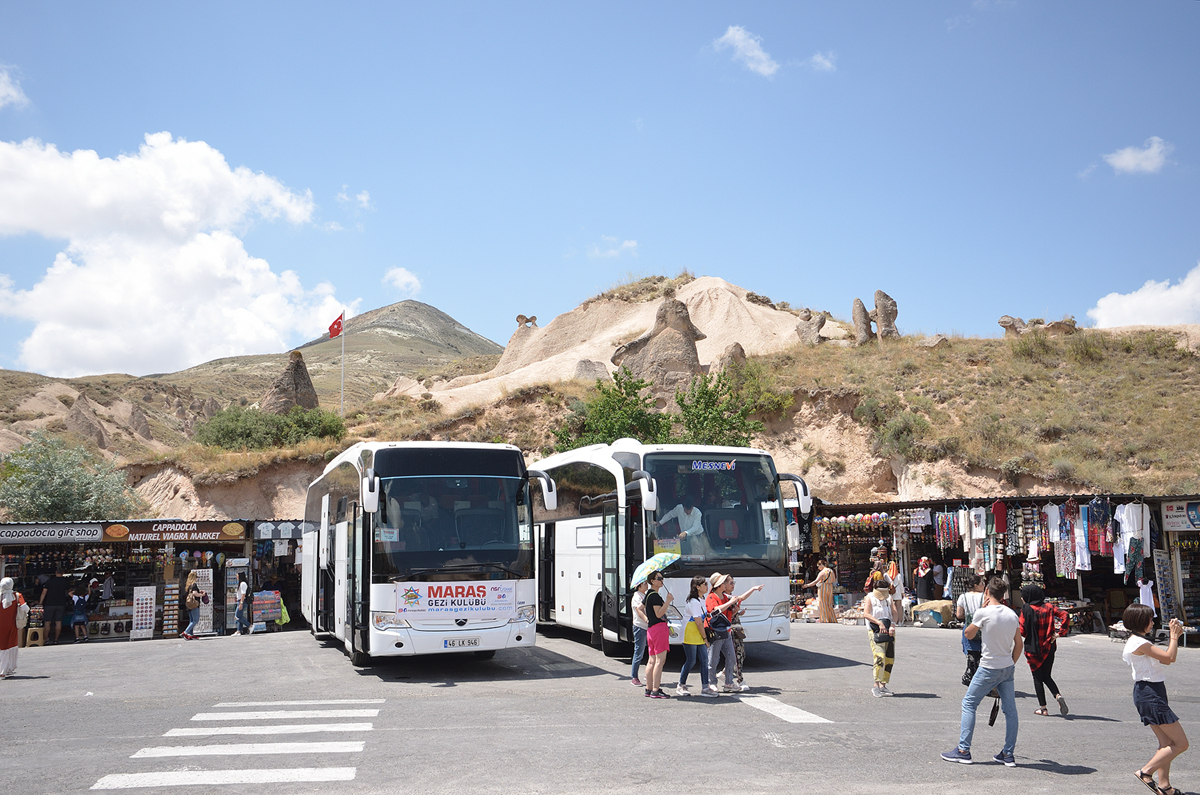 괴레메는 터키의 중부 지역에 위치해 있다. 파묵칼레 즉 데니즐리(Denizli)에서 괴레메까지는 거리가 꽤 되는 편이어서 데니즐리와 괴레메간 이동은 야간 버스를 많이 이용한다. 터키의 버스 시스템은 오토가르에 가면 버스 회사별로(PAMUKALE, NEVSEHIR, METRO, SUHA 등) 오피스가 따로 있으며 출발 시간이 조금씩 차이가 난다. 보통 버스는 여유가 있는 편이라고는 하지만 원하는 시간대의 버스를 타고자 한다면 하루정도 전에는 예매를 하도록 하자. 데니즐리에서 밤 10시 버스를 타고 밤을 보내고 나니 6시경이 되어 괴레메에 도착했다. 괴레메의 특이한 지형들이 눈에 들어오기 시작한다.