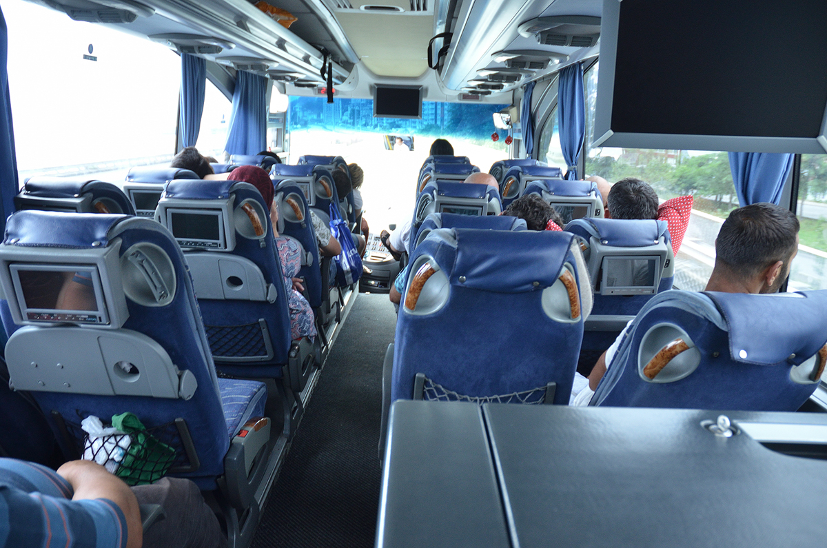 저녁 7시 버스 였으나 연착해서 7시 35분경에 출발을 하게 됐다. 출발지가 이스탄불이어서 그런지 정확한 시간에 출발하지는 못하는 것 같다. 한 줄에 3좌석인 줄 알았는데 4좌석인데다가 버스가 생각보다 좀 낡았다. 18시간 어떻게 갈지 살짝 걱정이 되는 순간이었다. 조지아행 버스들이 다 낡은 건지 내가 타고 간 버스만 그런 건지 ㅜㅡ.