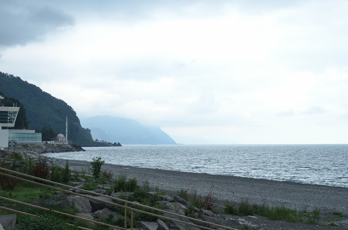 가는 중간 중간 주유소에 들러서 주유도 하고 쉬기도 했는데 그냥 버스에 있다가 밤 12시쯤 잠이 들었다. 그리고 새벽 5시 경 Cavuslu Dinlenme Tesisleri 라는 휴게소에 잠시 정차했을 때 눈이 떠졌다. 어느덧 버스를 탄 지 10시간이 지나는 시점이었다. 10시간 동안 못 움직여서인지 무릎이 시큰 거렸다. 밖을 보니 구름이 많이 낀 날씨에 해가 밝아오고 있었다. 지도를 보니 휴게소에서 보이진 않았지만 옆으로는 흑해가 있을 터였다. 버스는 다시 출발했고 시간이 지나 해는 뜬 것으로 보이는데 구름 때문인지 아직 어두컴컴했다. 버스가 해안 도로를 달리자 왼쪽으로 흑해가 펼쳐졌다. 도로 오른쪽으로는 간간이 마을이 보이기도 했고 조금 멀리로는 산세가 형성되어 있었는데 예전 크로아티아 해안가를 연상케 하는 모습이었다. 다시 지도를 검색해 보니 터키의 Trabzon 마을을 지나고 있었다.