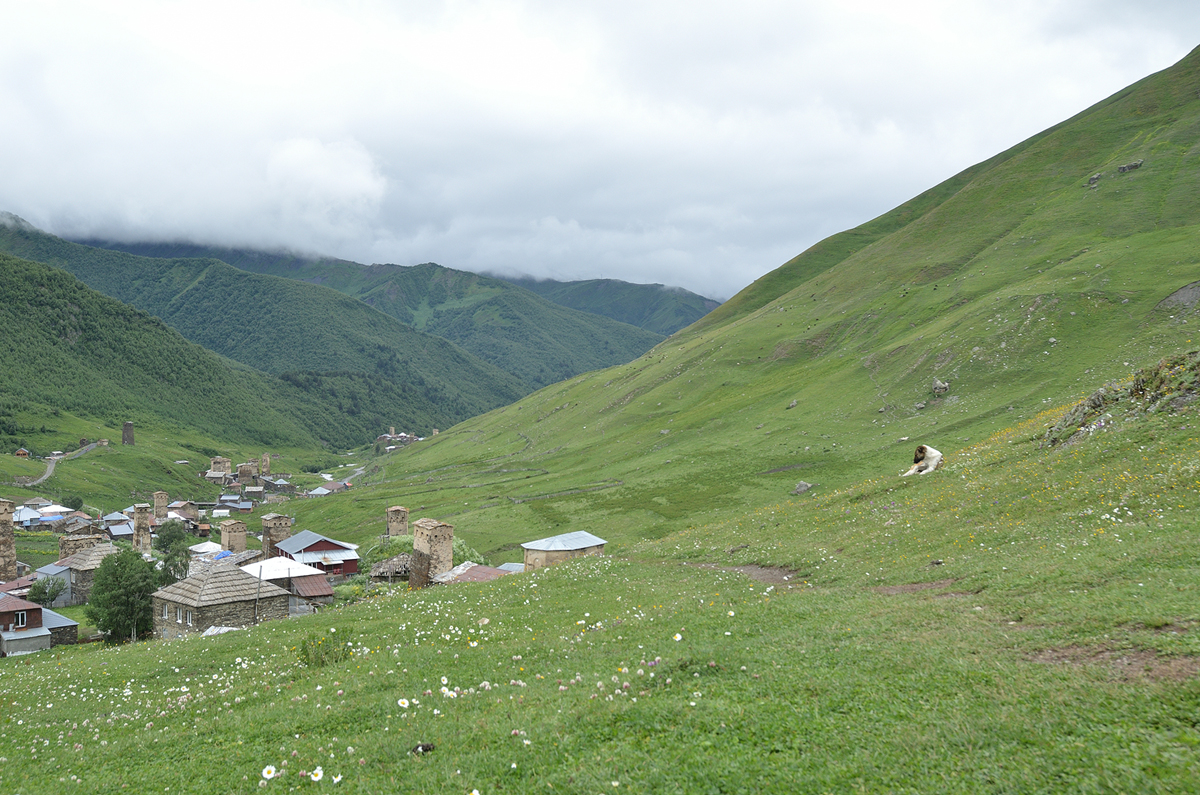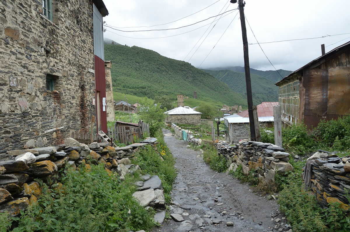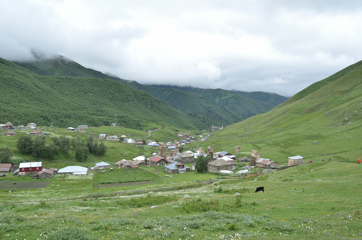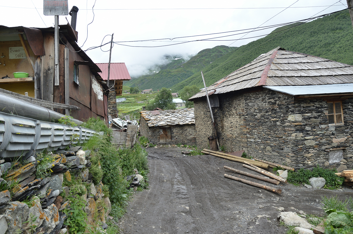 스바네티 지역에서 트레킹 지역으로 유명한 우쉬굴리. 쉬크하라 빙하 트레킹을 마치고 돌아오며 우쉬굴리에 들러 보았다. 날씨가 좋지 않아서인지 사람들이 별로 없었다. 우리도 그냥 지나치기에는 아쉬워 오는 길 잠깐 들러 보았다.