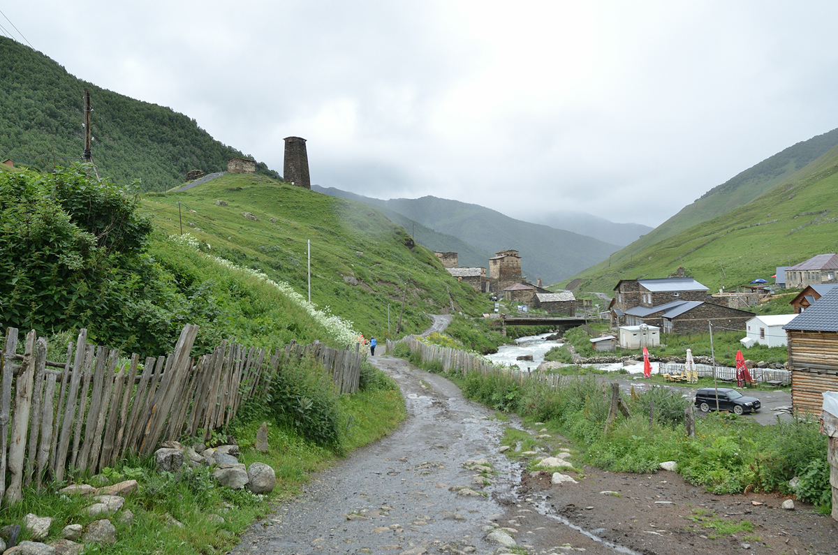 우쉬굴리 구경을 마치고 메스티아로 돌아오는 길. 비가 점점 내리고 있었다.