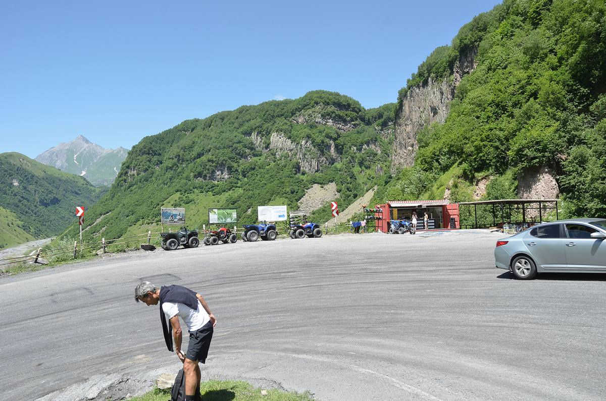 11시 30분경에 디두베역을 출발해서 중간에 퍼진 차에 타고 있던 사람들을 태워서 다시 출발했다. 그런데 문제는 여기서 시작했다. 승객들 뿐만 아니라 택시기사도 바뀌었는데 이 택시 기사가 운전을 제대로 못한다. 클러치를 제대로 안 밟은 상태에서 기어를 변속하는 거 같은데 그래서 미션을 계속 긁어 먹는다. 그래서 결국 우리 차도 중간에 퍼져서 가다 서다를 반복했다. 앞에 차가 퍼진 이유가 있었다. 결국 세 군데 중 한 군데만 들르고 나머진 사람들이 불안해서 서지말고 그냥 가자고 해서 카즈베기에 도착했다.