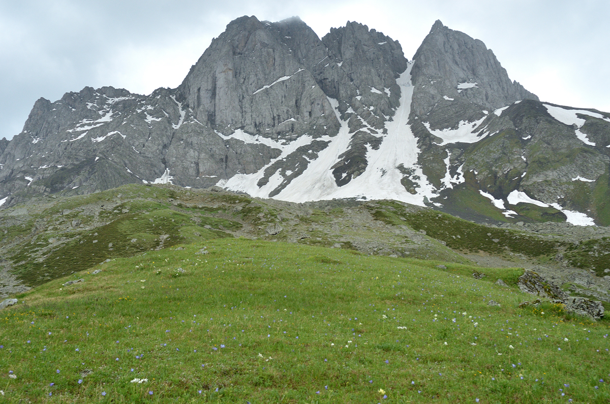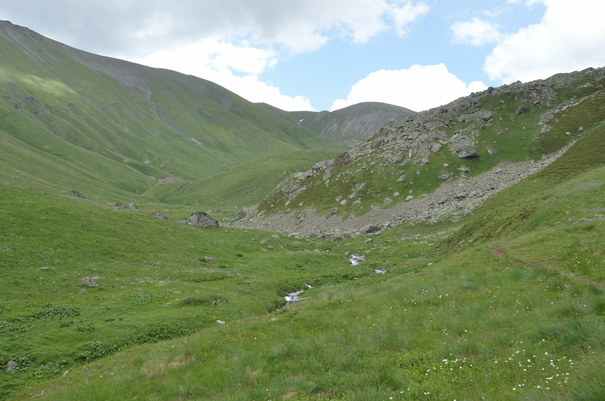 2시간 40분 가까이를 걸었지만 처음 목표였던 Abudelauri White Lake는 고사하고 Abudelauri White Lake를 볼 수 있다는 Chaukhi Pass 까지도 가지 못했다. 체력이 달려서인지 시간대비 트레킹 안내서에 나와있는 거리보다 못 미친 거리였다. 아쉬운 마음에 비가 내리는 풍경을 잠시 둘러보고는 발길을 돌렸다.