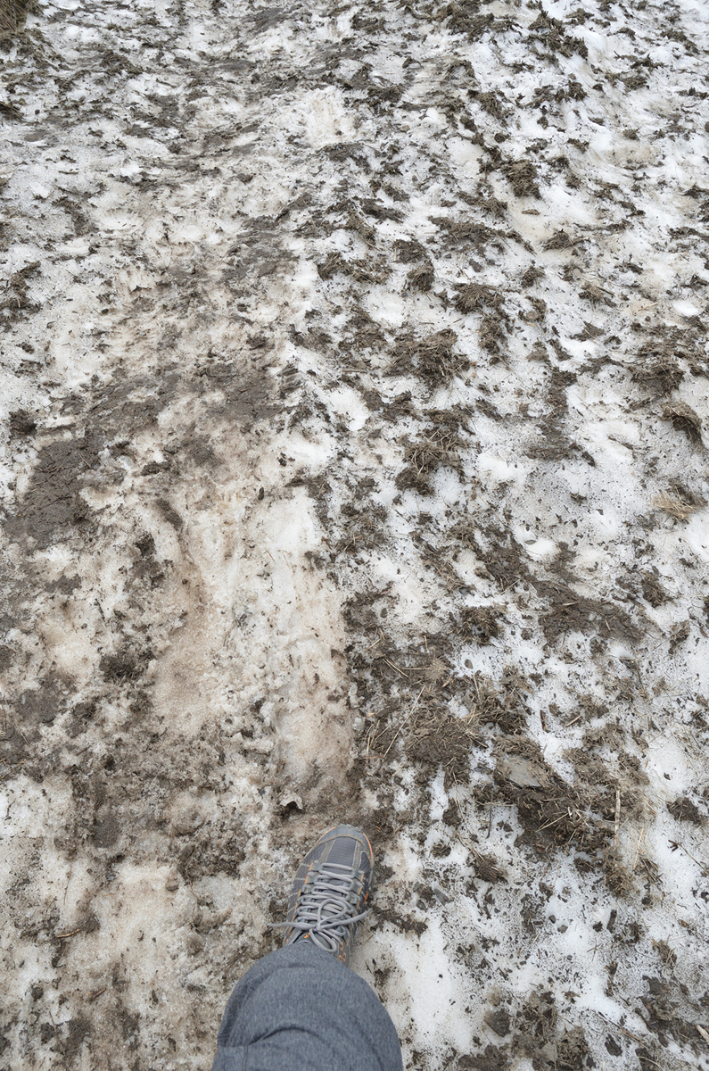 눈으로 강을 건너서 길을 따라 계속 가 본다. 약간의 오르막 길로 계속 이어진다.