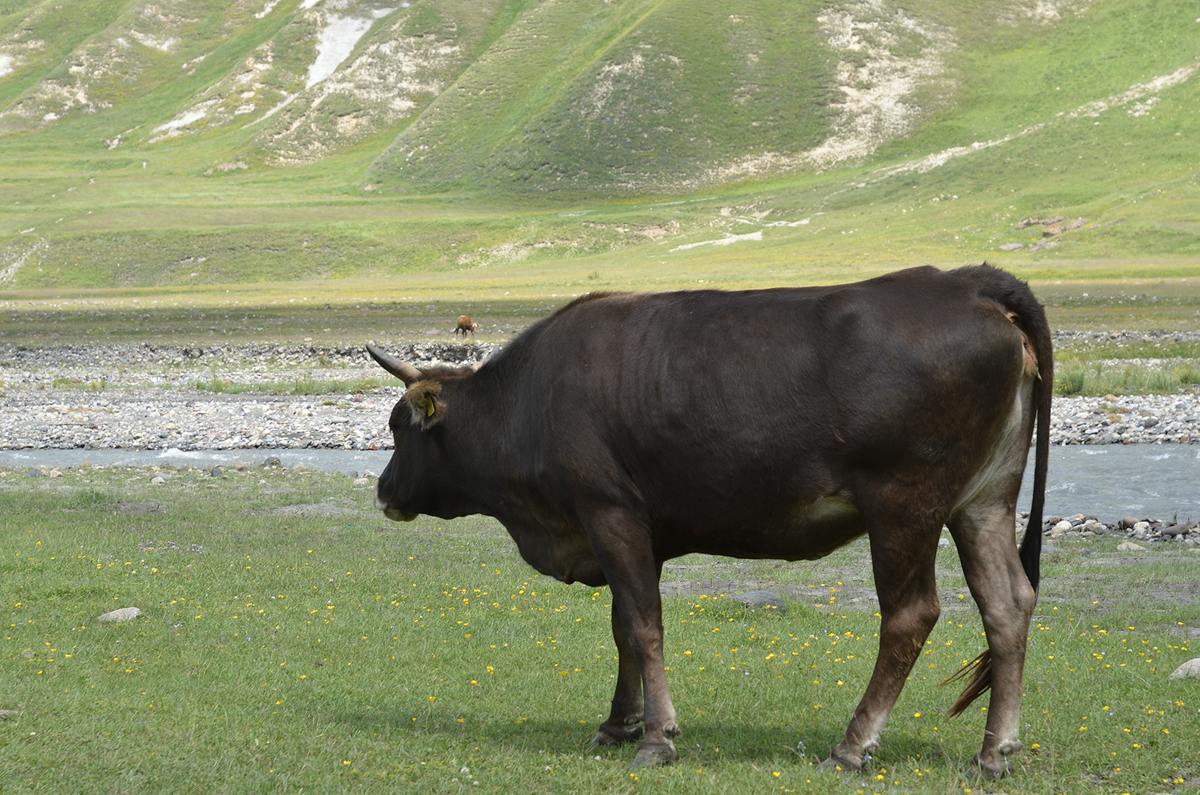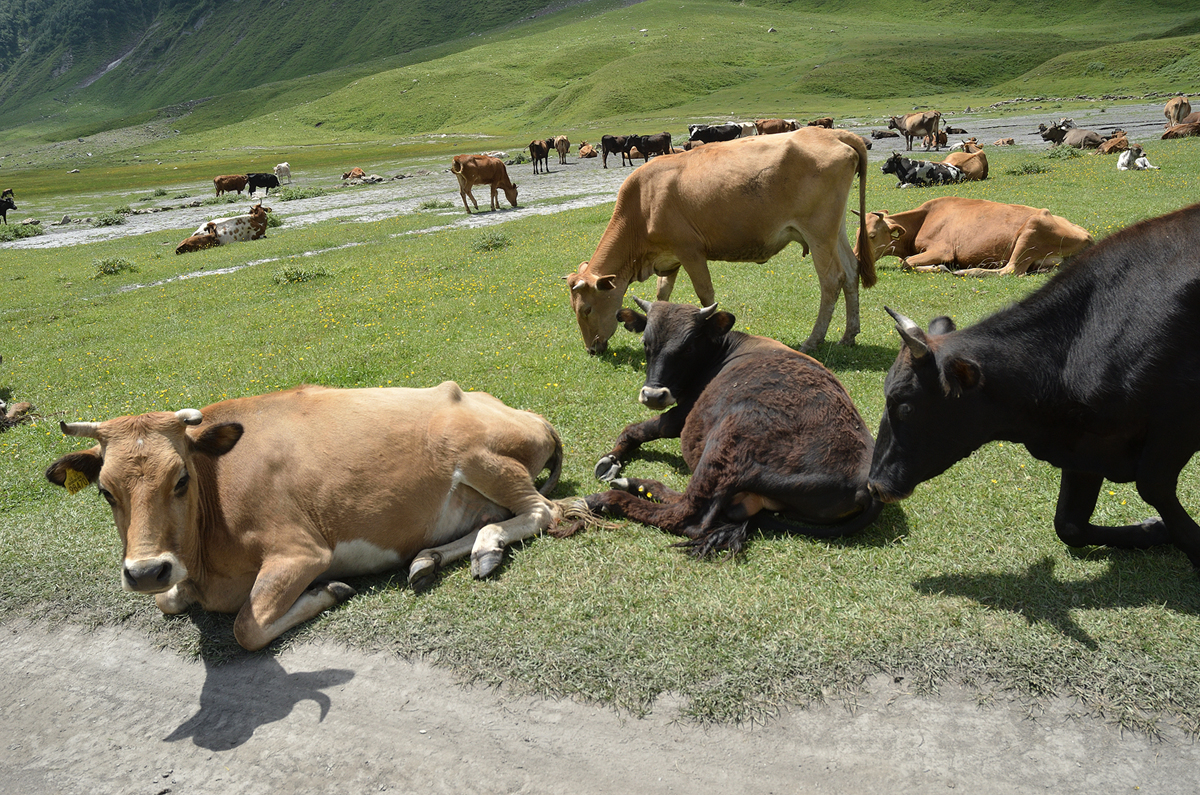 방목된 소들이 길을 점령하고 있다.