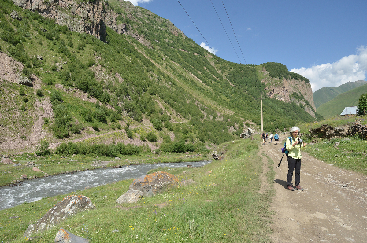 트루소 밸리(Truso Valley) 트레킹. Stepantsminda 지역에서 유명한 트레킹 중 하나로 Truso 마을에서 자카고리 요새(Zakagori Fortress)까지 왕복 22km 거리로 6시간 정도 소요되는 트레킹이다. 테레카 강을 따라 걷기 때문에 평지가 대부분이라 긴 거리라는 것 빼고는 그렇게 힘들지는 않은 코스다.