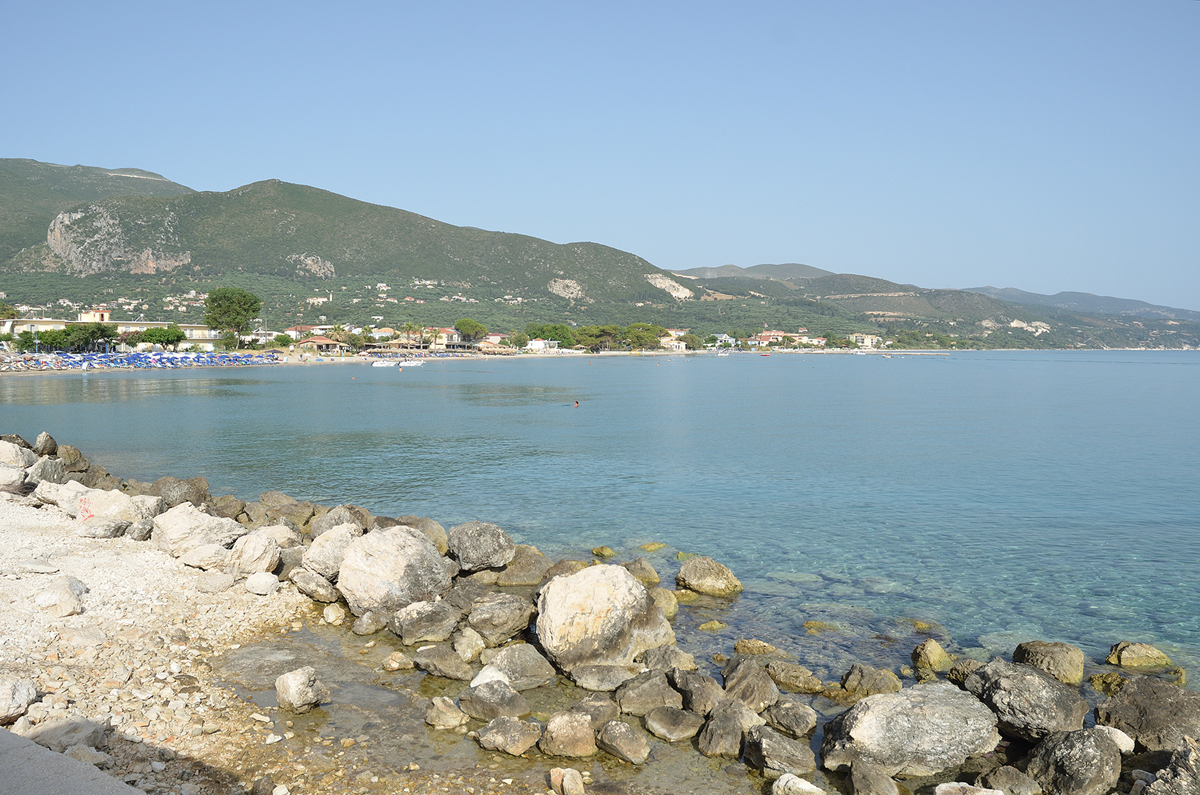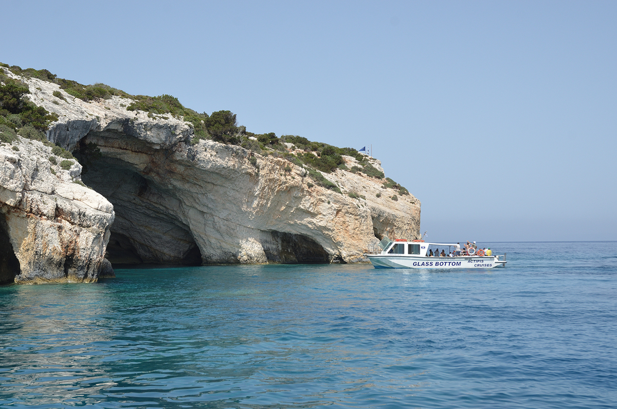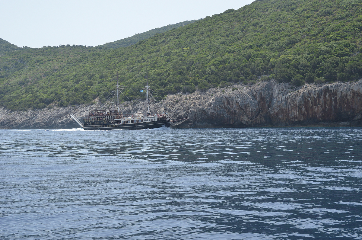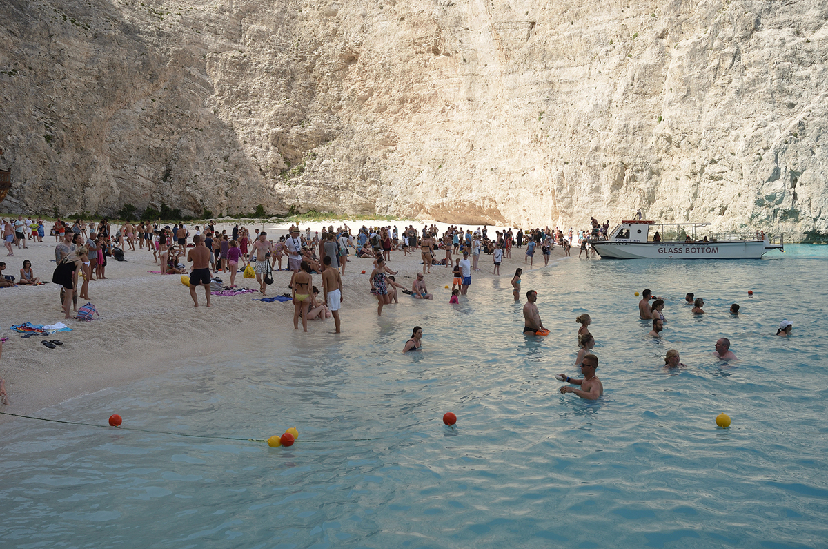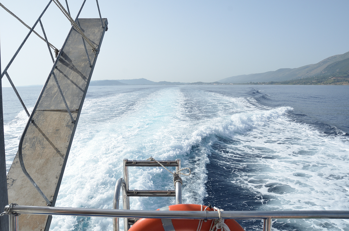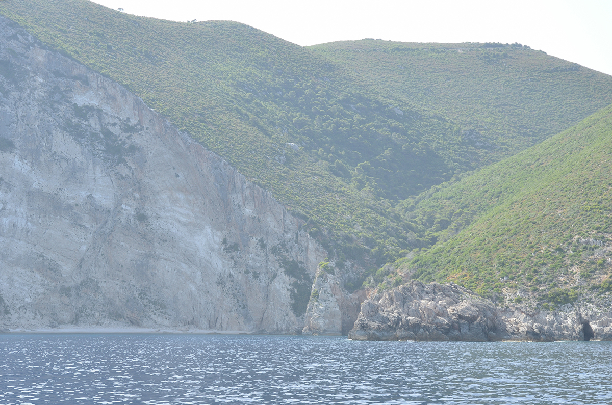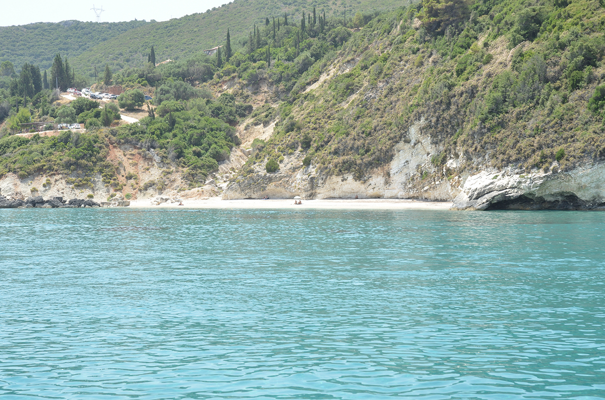 자킨토스 섬에서의 둘 째날. 처음 계획으로는 오전 11시 페리를 타고 섬을 나갈 계획이었으나 막상 Shipwreck Beach를 가지 않고 떠나기가 너무 아쉬워 페리 시간을 오후 3시로 변경하고 다음날 Shipwreck Beach 투어를 나섰다. 이용한 투어는 Golden Dolphin. Shipwreck 보트 투어는 자킨토스항 근처에서 출발해서 Shipwreck Beach를 들른 다음 돌아오는 길에 두 어 군데 더 들러서 수영을 할 수 있는 투어로 4시간가량 소요된다. 투어 배를 탄 해변 모습. 이곳만 해도 물이 엄청 깨끗해서 바닥이 다 보일 정도다.