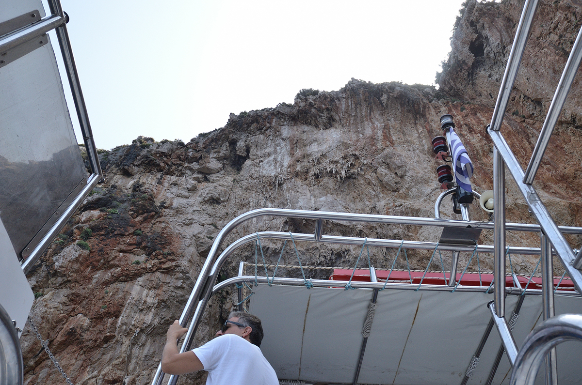 성 안드레아스 동굴. 절벽 천장 위를 향해 동굴이 나 있다.
