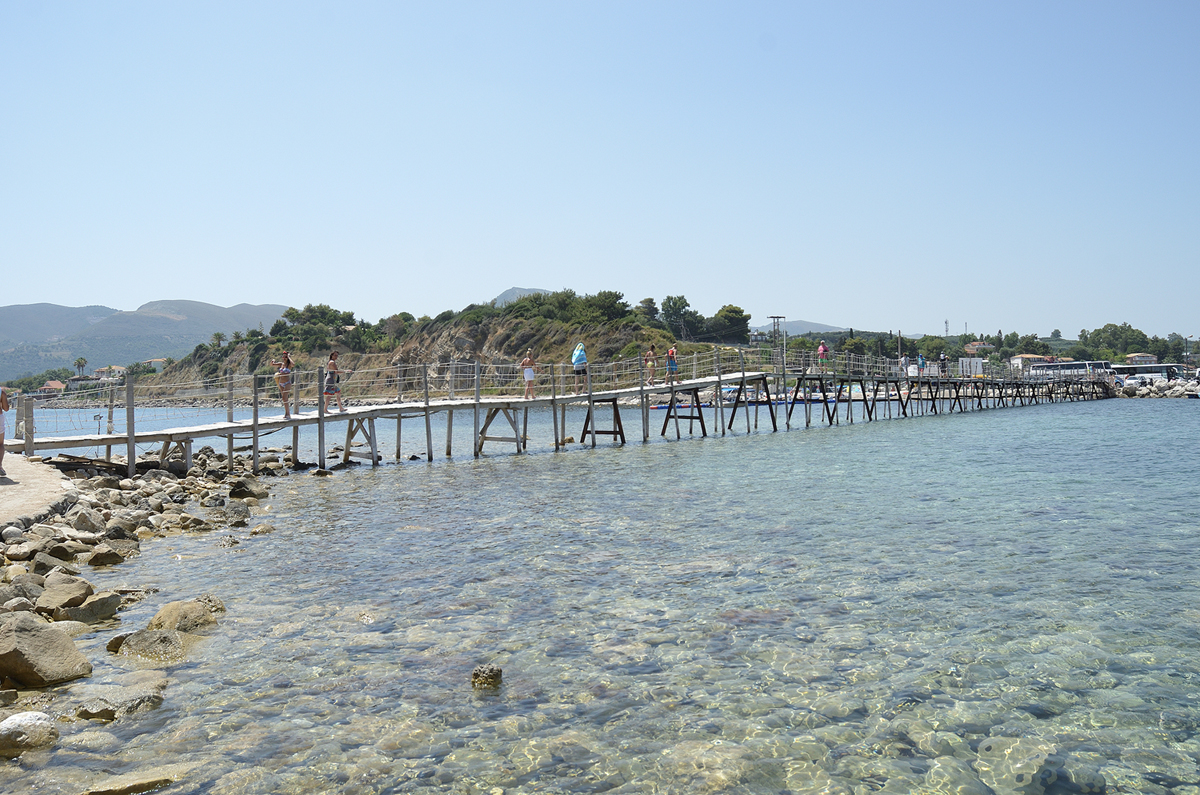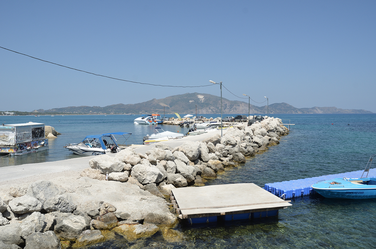숙소 체크인이 2시였는데 조금 일찍 도착해서 호텔에서 추천해준 식당에서 점심을 먹고 난 후 체크인을 했다. 호텔 체크인 후 오후 시간이 좀 남아서 스노클링 할만한 장소를 물어봤다. 호텔에서 추천해 준 장소 중 하나인 Port Sostis. 위치는 자킨토스 남동쪽에 있는 작은 마을 해변가다. 아래 사진에서 보이 듯이 해변 바로 앞에 작은 섬이 하나 있는데 섬 반대편이 반달 모양의 해변이다. 다만 사유지인지 입장료 5유로를 받는다.