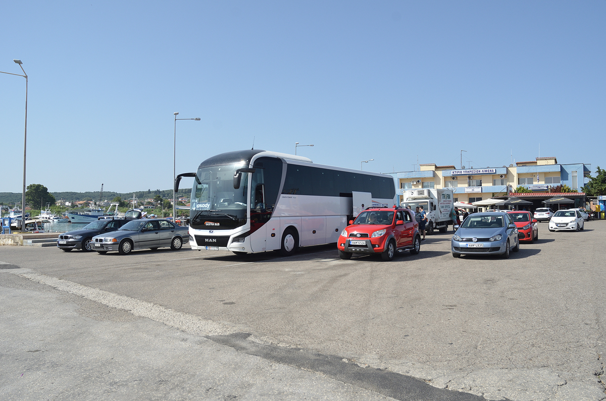 차들도 자킨토스 섬으로 가기 위해 대기하고 있다. 사람들이 없어서 의아해했는데 저 뒤로 보이는 건물 식당에 사람들이 다 모여있었다.