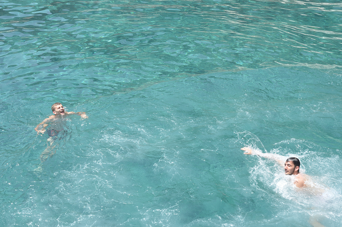 육지로부터 내려와서 수영을 즐기는 사람들도 있고...