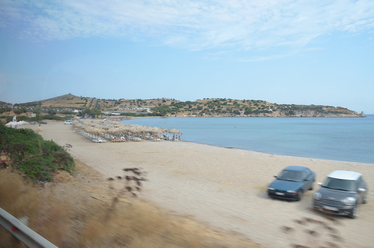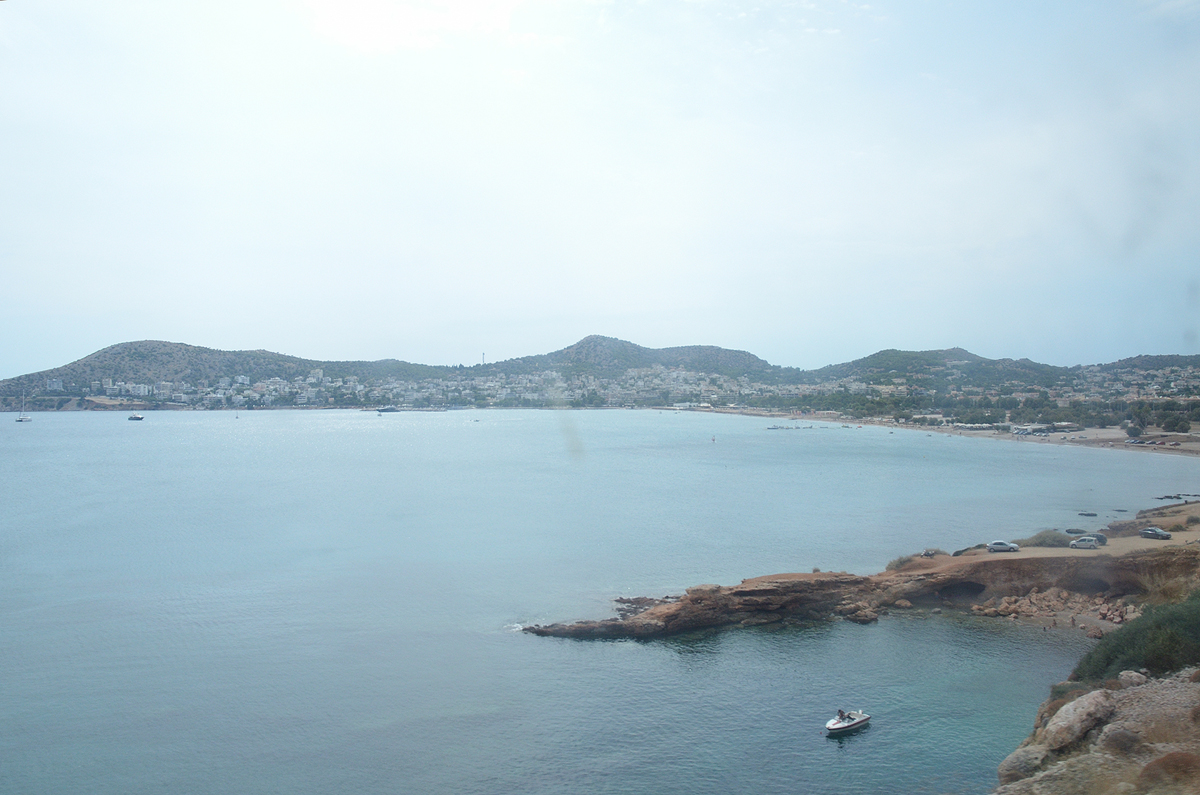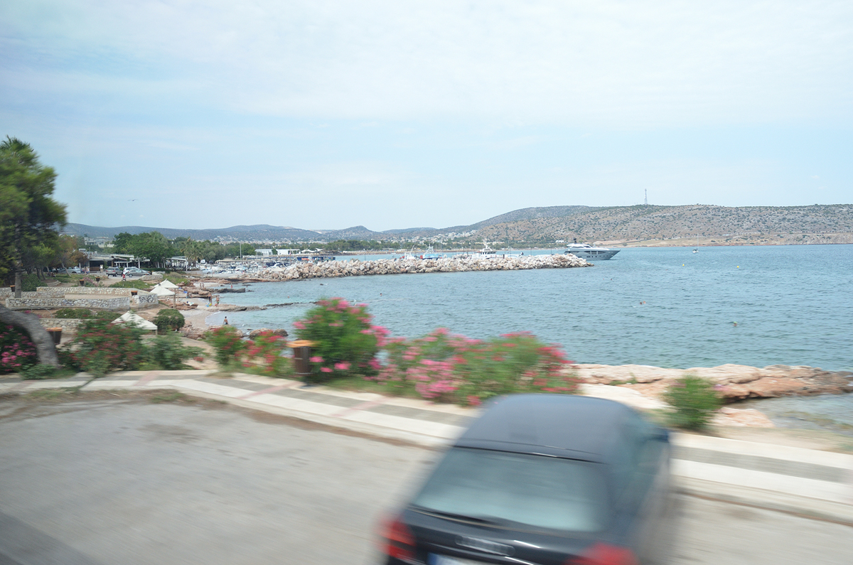 아테네에서 수니온 곶 가는 길 풍경. 20분 정도 걸려서 아테네 시내를 빠져나가면 바로 해안가를 달리게 된다. 가는 길에 보니 사람들이 수영을 즐기고 있는 해변가가 여기저기 많이 있었다. 물도 상당히 깨끗해 보여서 그냥 아테네에 머무르면서도 바다를 충분히 즐길 수 있을 듯 보였다.