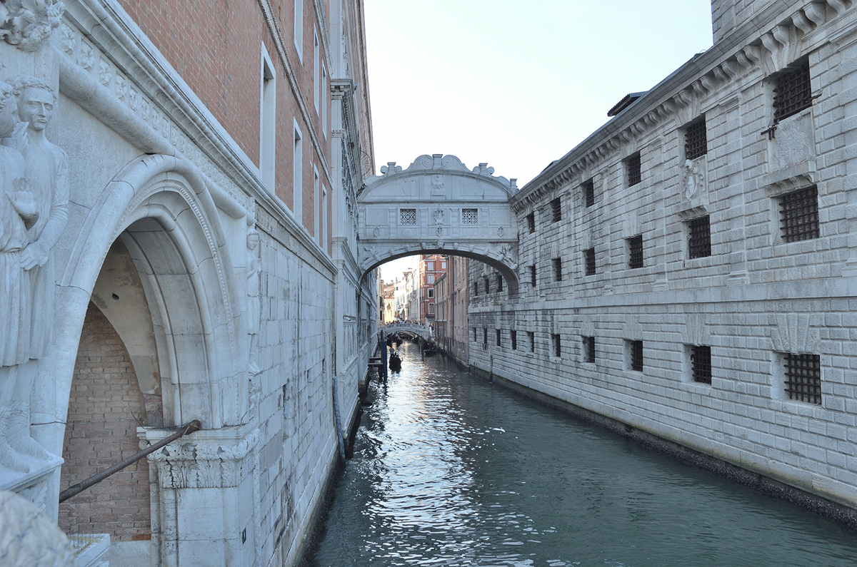 탄식의 다리. 두칼레 궁전과 감옥을 연결하는 다리로 죄수들이 이 다리를 건너며 베니스의 마지막 모습을 볼 수 있어 탄식을 자아냈다고 해서 탄식의 다리로 이름 붙여졌다고 한다.