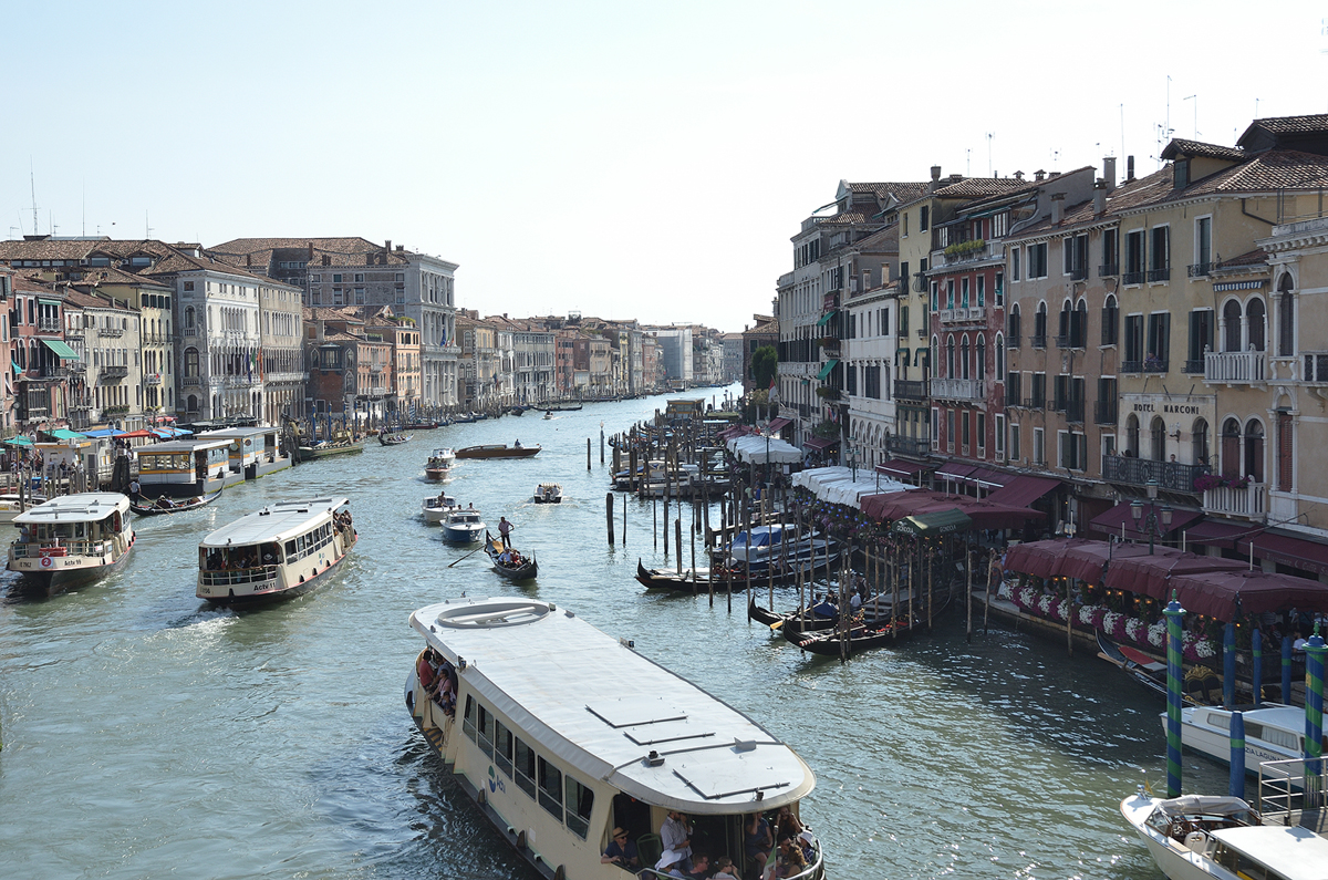 걸어 다니며 베니스를 둘러본 후 다시 수상 버스를 타고 베니스 구경에 나섰다. 수상 버스 중 1번이나 2번 수상 버스를 타면 메인 수로인 카날 그란데를 돌며 관광지를 구경할 수 있다. 해서 2번 수상 버스의 경우 관광객이 넘쳐난다.