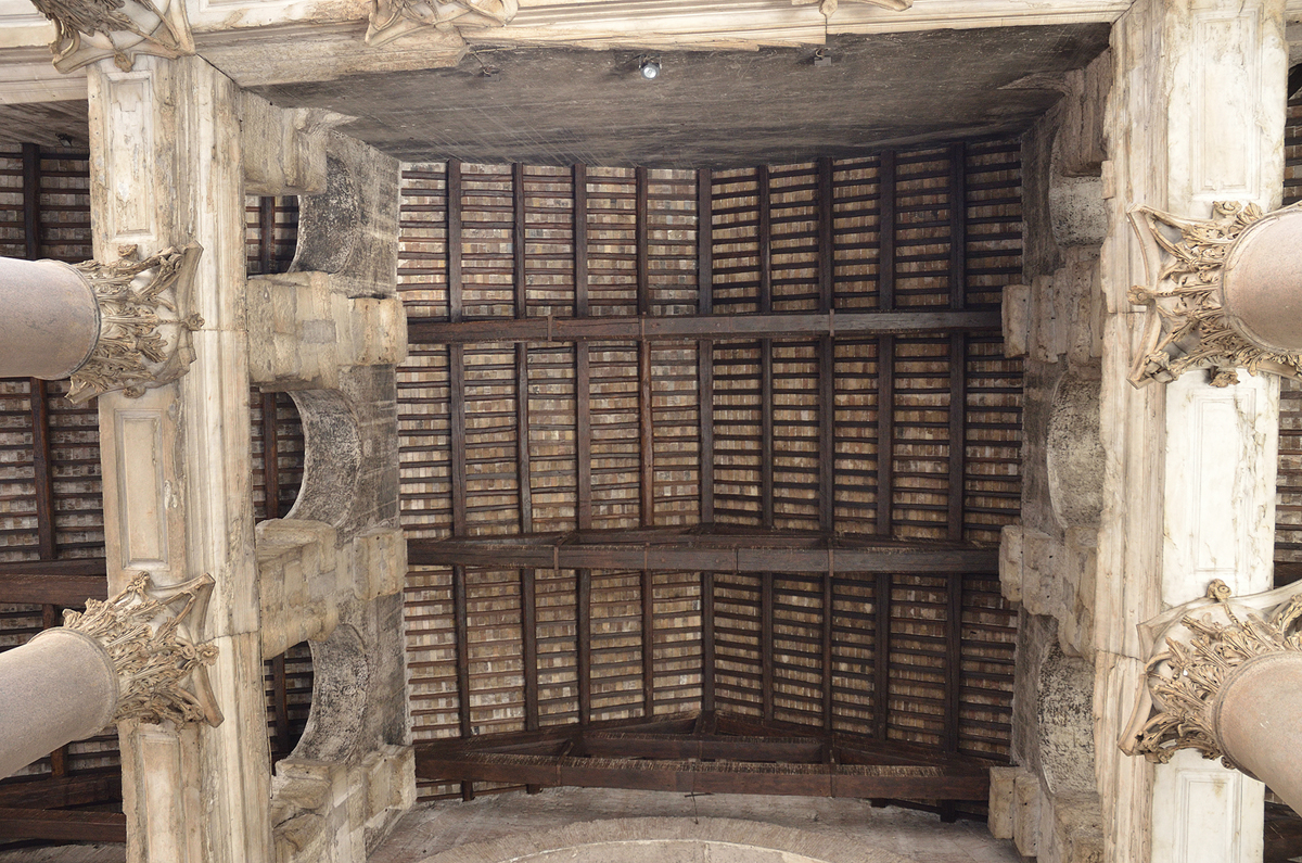 돔 천장에 저렇게 구멍이 나 있는데 저렇게 구멍을 낸 채로 돔을 만드는 것이 상당히 어렵다고 한다.
