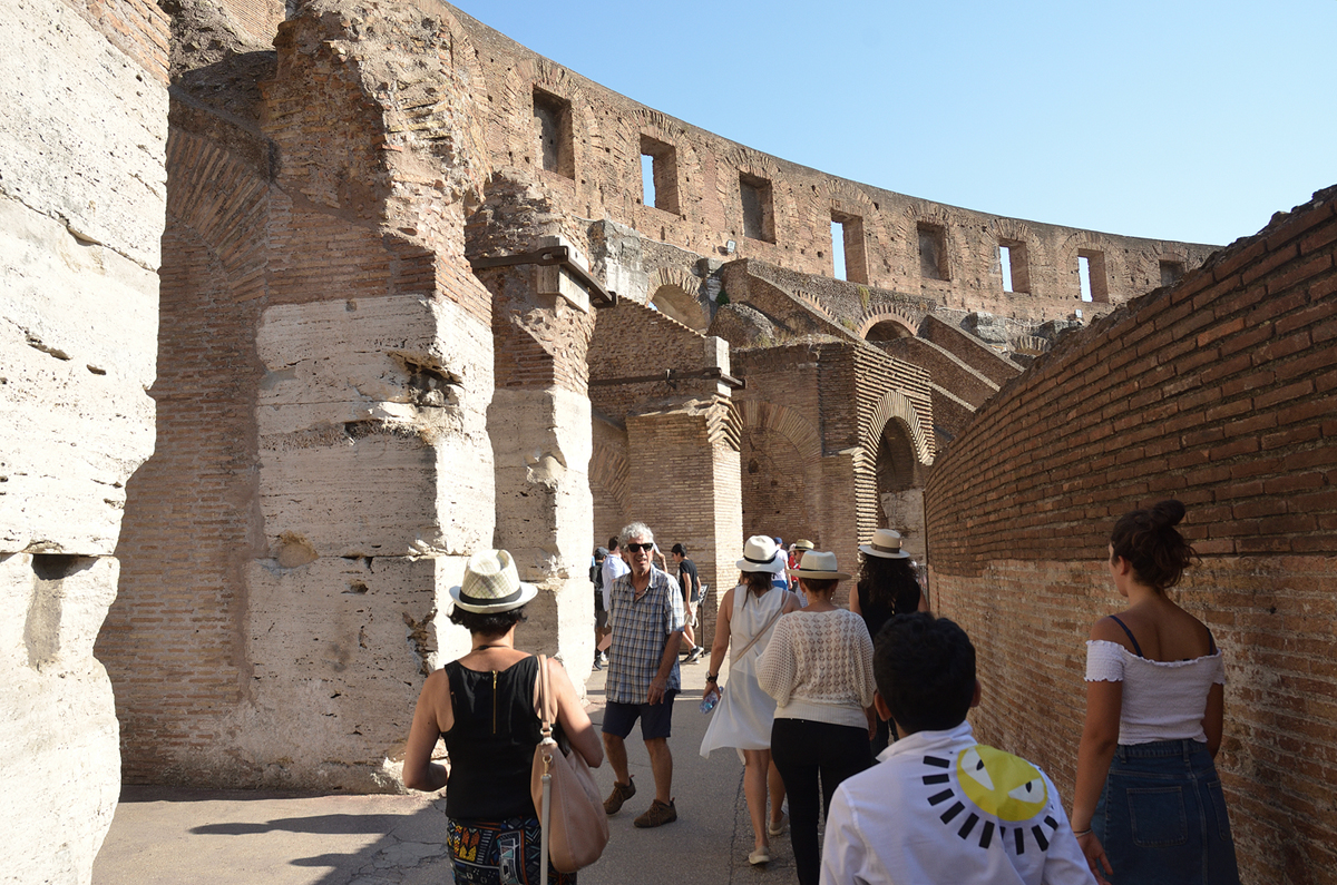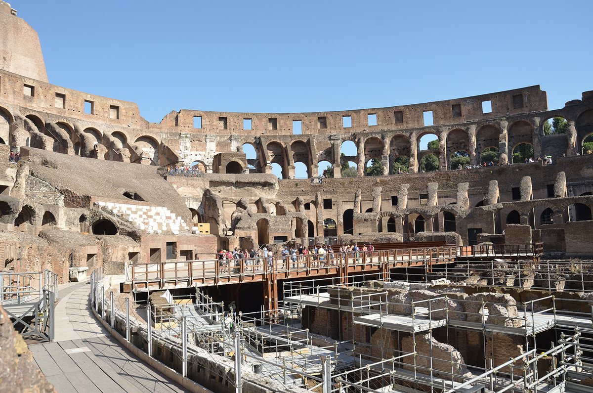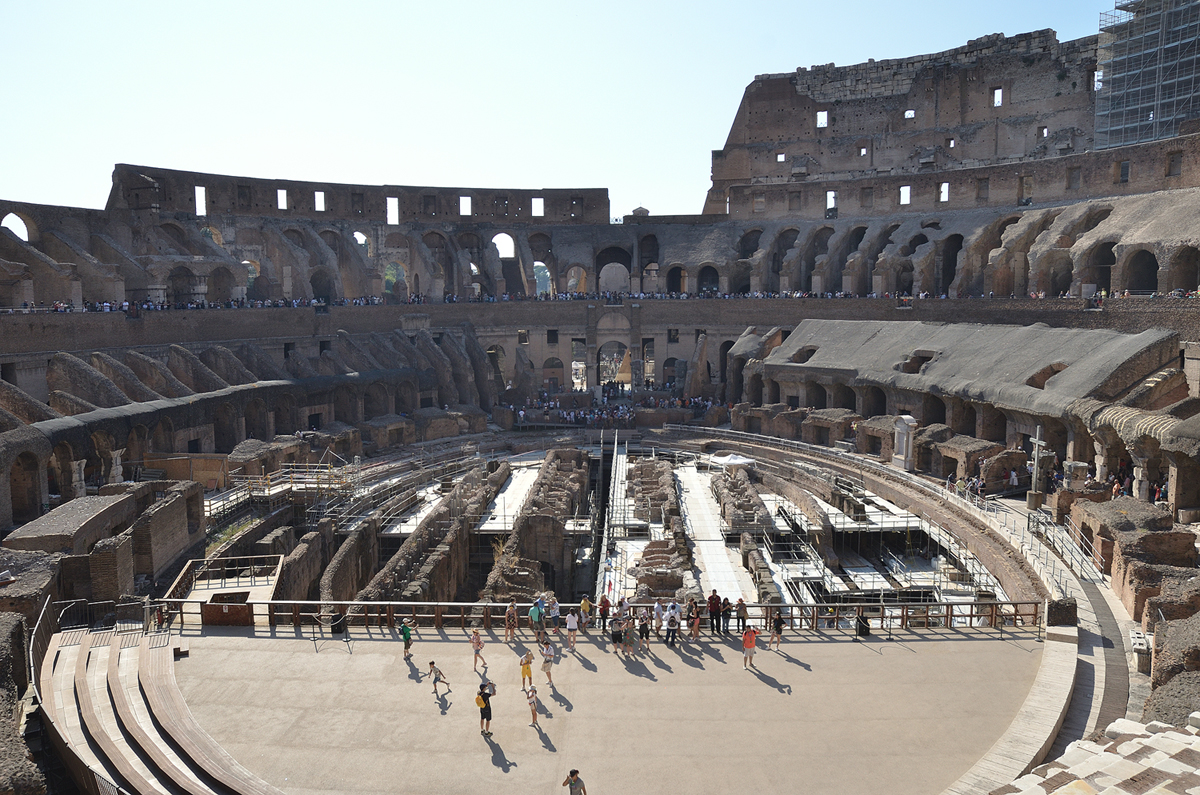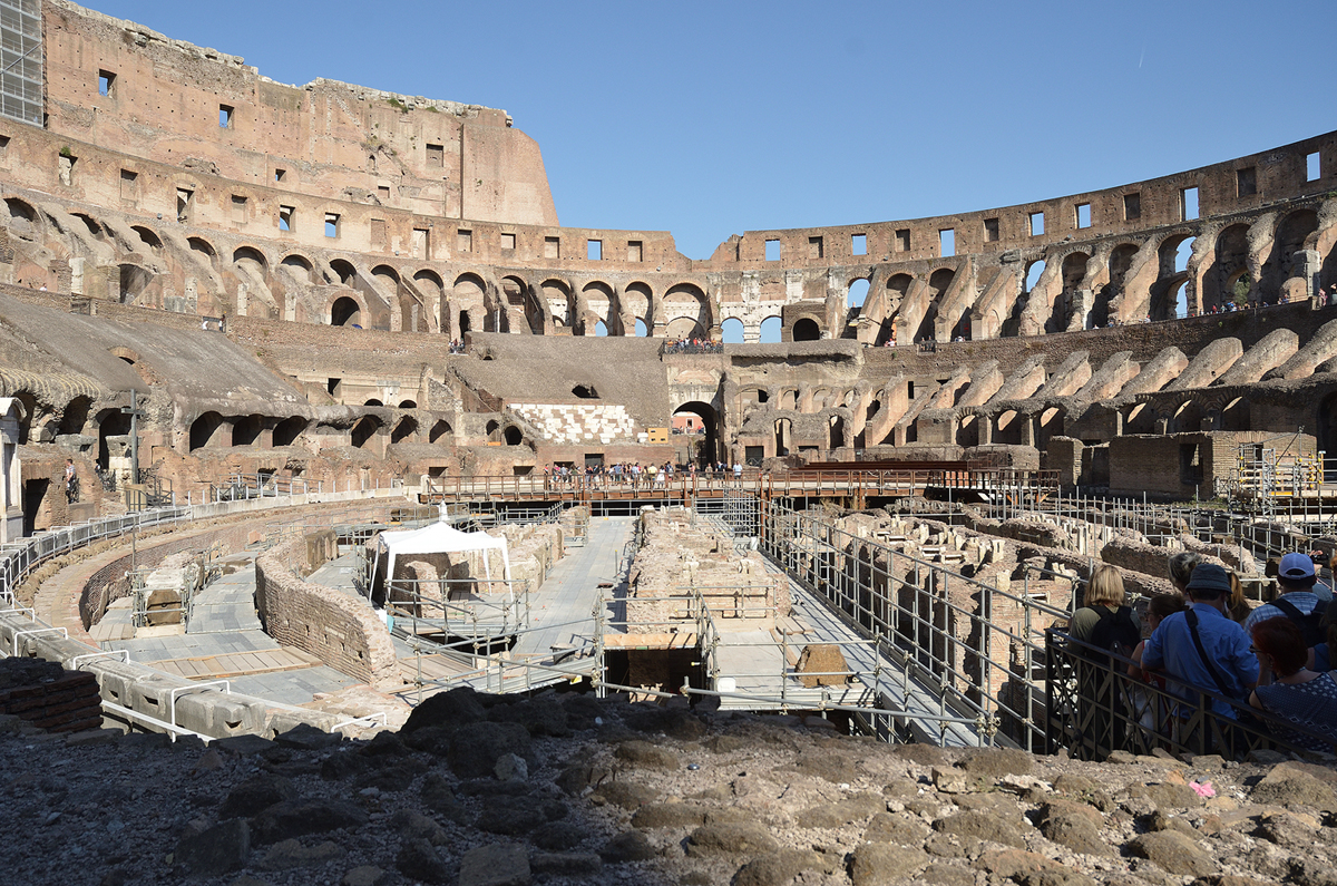 콜로세움 내부 모습. 생각보다는 콜로세움의 크기가 크진 않았다. 지하는 검투사들의 대기나 맹수 대기용으로 사용되었다고 한다.