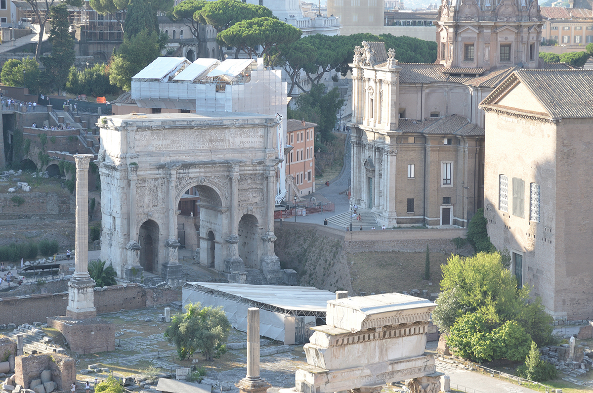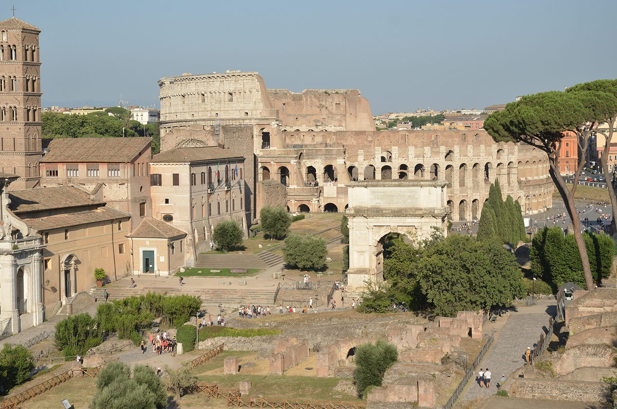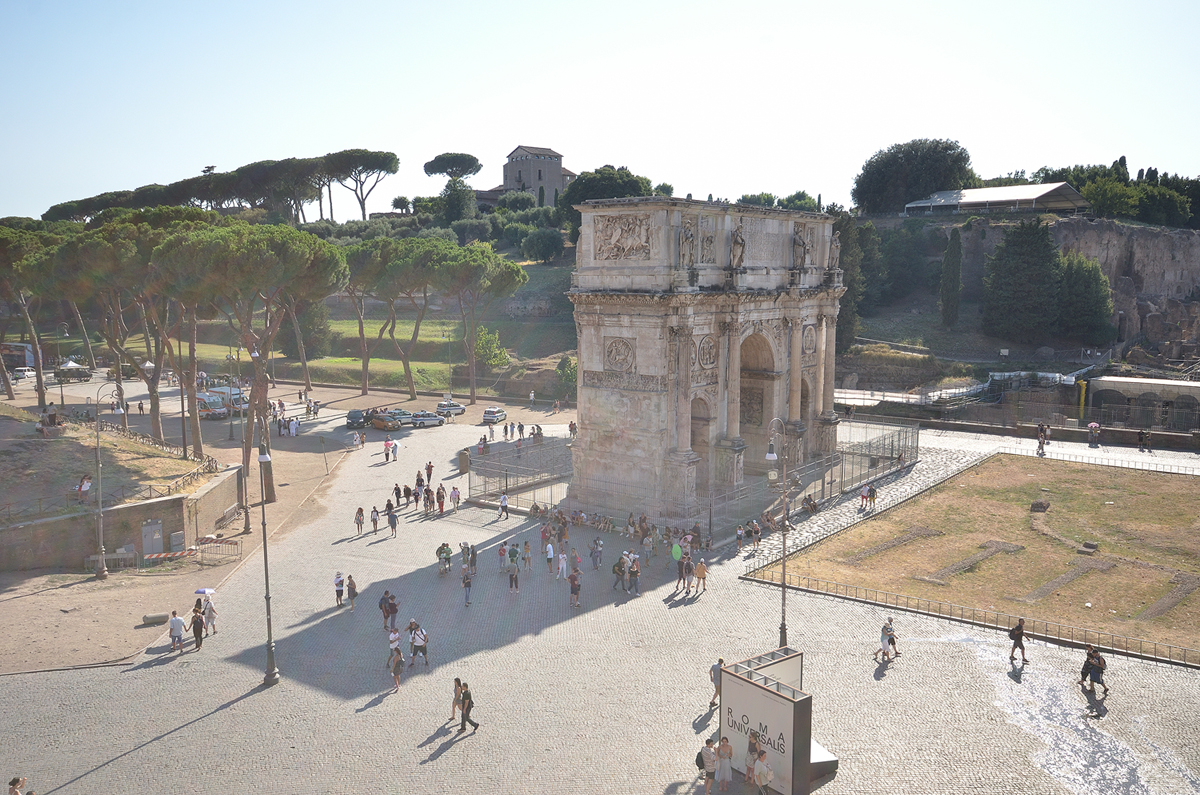 콜로세움 구경을 마치고 팔라티노 언덕과 포로 로마노쪽으로 가 본다. 아래 사진에서 보이는 티투스 개선문을 지나면 왼쪽으로 팔라티노 언덕이 위치해 있다.
