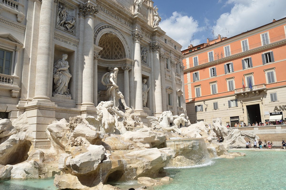 트레비 분수. 유명 관광지답게 엄청남 인파가 몰려 있다.