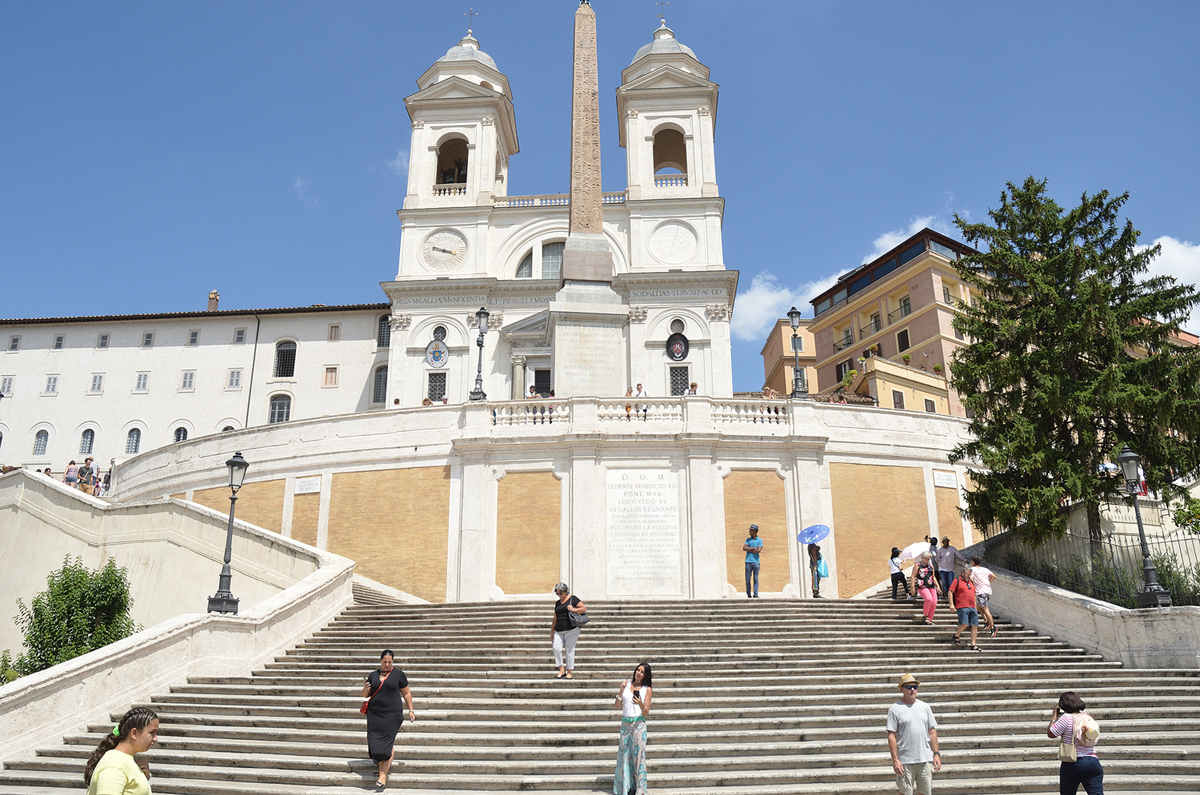 스페인 광장에서 바라본 트리니타 데이 몬티 성당과 스페인 계단.