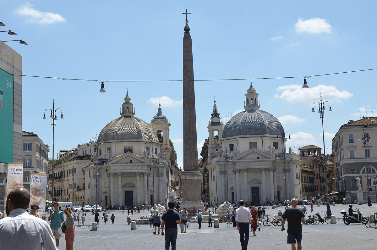 쌍둥이 건물로 보이는 산타 마리아 인 몬테산토 성당. 성당 사이로 난 길을 쭉 따라가면 트레비 분수나 판테온 등이 모여있는 관광구역으로 갈 수 있다.