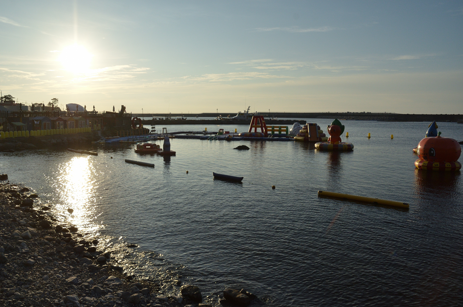 여름이라 그런지 바다 놀이터(?)가 설치되어 있었다.